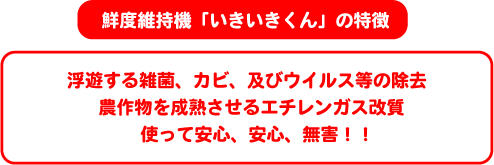 2,光触媒フィルターに紫外線を照射して農産物を熟成させるエチレンガスを分解し、休眠状態になって鮮度が維持されています。