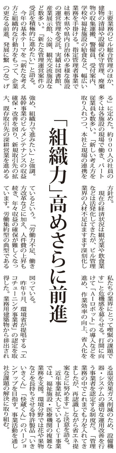 わが社には、この事業が人間生活に融合直結する貴重なものであることを自覚し、常に誠実と奉仕の精神を忘れず、創造的な企業活動をもって社会の発展と安全のために社命を捧げる所存であります。